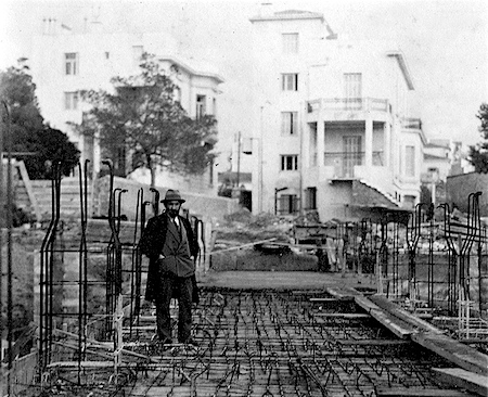 Ο αρχιτέκτονας Ν. Ζουμπουλίδης κατά την ανέγερση του κτηρίου το 1923