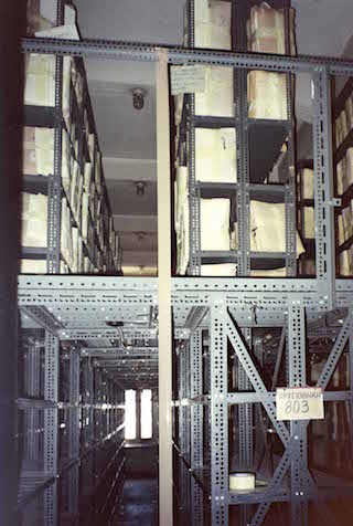 Οι προδιαγραφές στατικής αντοχής ήταν ένας τόνος ανά τετραγωνικό μέτρο, αναγκαία αντοχή για την αποθήκευση όγκων χαρτιού. Η διαρρύθμιση των χώρων ανταποκρινόταν στη σκοπούμενη χρήση του αρχειοστασίου, χώρων δηλαδή φύλαξης και όχι εργασίας. Οι όροφοι ήταν χωρίς διαχωριστικούς τοίχους και εγκαταστάθηκαν σ' αυτούς πολυώροφα μεταλλικά ράφια που παραγγέλθηκαν στη Γερμανία.